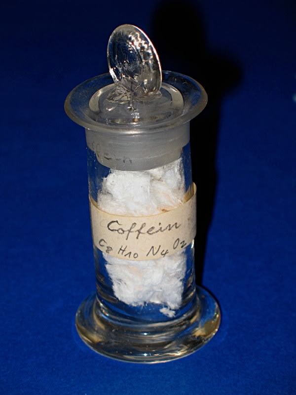 Man kann natürlich auch die Reinsubstanz in seidenglänzenden Kristallen durch Extraktion mit Ethanol in größeren Mengen gewinnen. Vor ca 50 Jahren habe ich das in meinem Kellerlabor nach "Gattermann" aus 100g Tee gemacht. Die Originalprobe von damals habe ich bis heute gerettet.