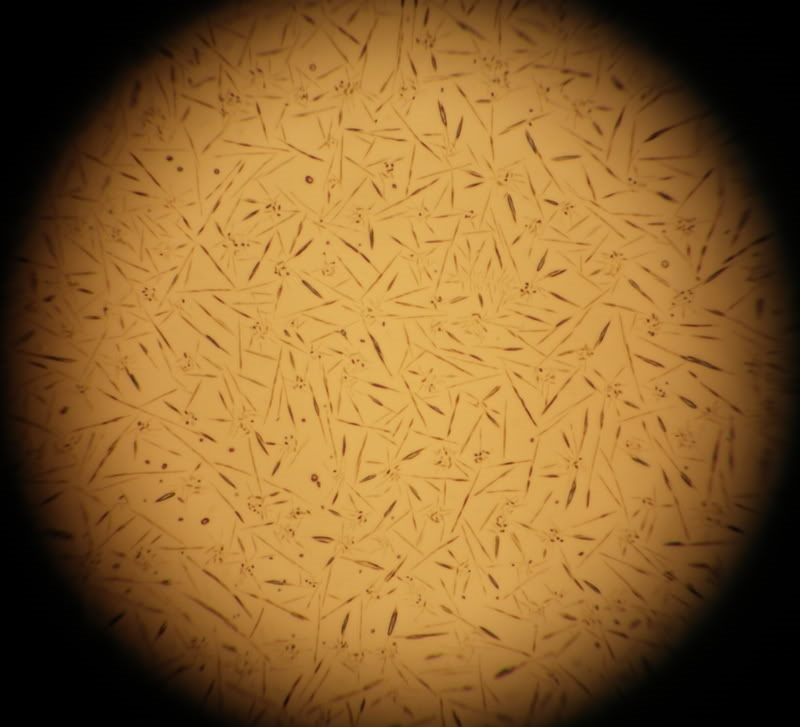 Dieser Thread ist zwar schon lange nicht mehr aktiv, ich wollte aber trotzdem mal an dieser Stelle ein (Hellfeld-)Foto von Coffein-Kristallen zeigen, die ich aus Kaffe sublimiert habe.