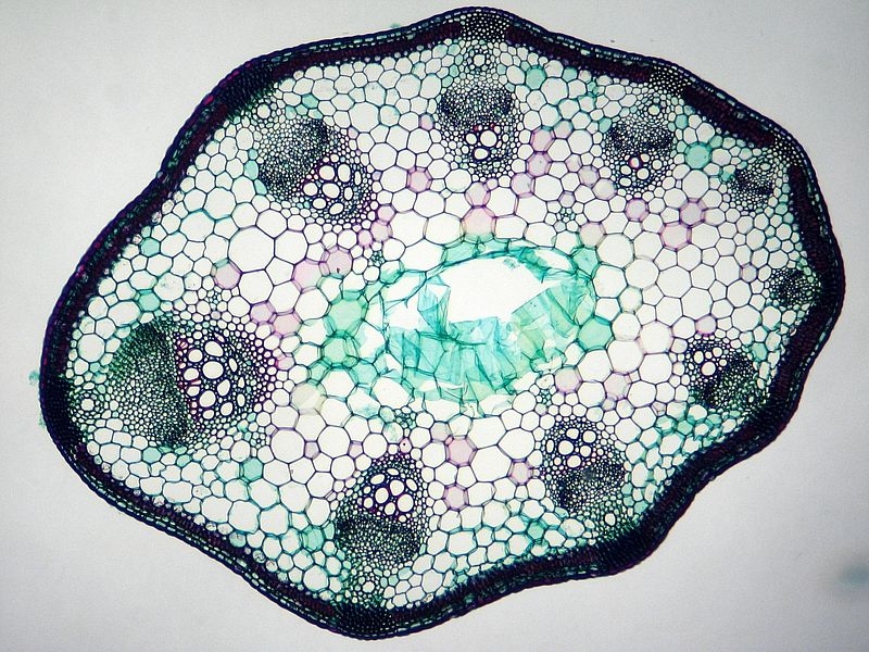 Bild 2: Sprossquerschnitt gefärbt mit Etzold Grün, Vergrößerung 50x, Stapel aus 5 Bildern