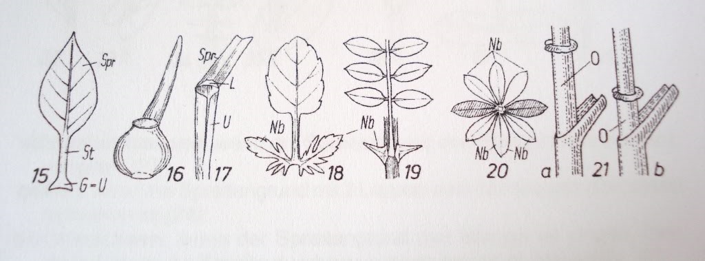 die Nebenblätter oder Stipeln (18–19, Nb) auf, die bei den Rosaceen,