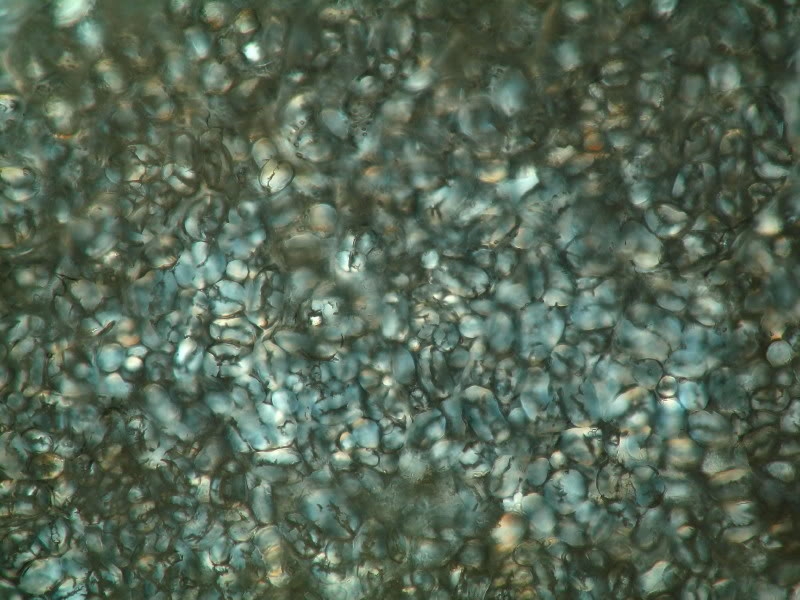 .... Hatte ich auch nicht behauptet, sondern glaubte "Stärkekörner in eingetrocknetem 'Sirup'" erkennen zu können. Dass die Verbindungslinien um und zwischen den Körnern die Reste eines durch Schrumpfung trockneten Mediums sind, wird ja 'ein Blinder mit Krückstock' noch erkennen.