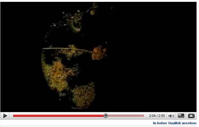 Aber zu Deinem DF-Problem: Nicht verzweifeln und die Weihnachtsfreude trüben lassen. Grundsätzlich funktioniert das Dunkelfeld doch - nur nicht in der Raststellung des Revolverkondensors. Man sieht es an diesem Bild, das ich aus Deinem Video gezielt "herausgeschnitten" habe ( während Du die DF-Blende einschwenkst ).