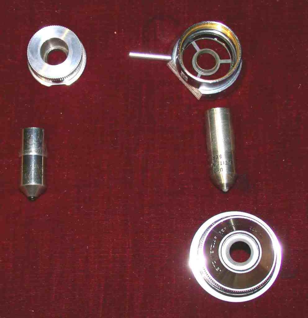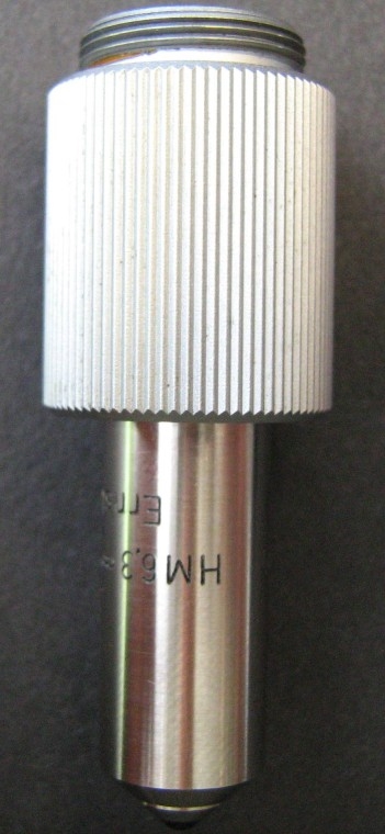 ... Das Objektiv gehört, wie Klaus schon gezeigt hat, zu einem Mikrohärteprüfgerät. Es ist aber nicht die Diamantspitze (obwohl es in der Tat wie eine Solche ausieht und wahrscheinlich leider auch oft so missbraucht wurde...), sondern ein ganz 'normales' Objektiv, nur eben auf maximale Schlankheit getrimmt. Und es stammt sicher nicht von einem Ultropak, in welchen allerdings ganz ähnliche Objektive verbaut wurden:
