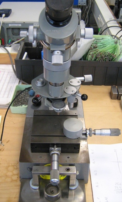 Das Gerät dazu sieht wie ein Werkstatt- bzw. Lichtschnittmikroskop aus.