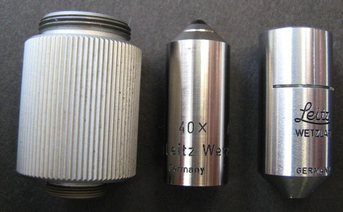 vorsicht: Leitz hat in der gleichen Bauform wie die Oltropak-Objektive auch solche für unendliche Tubuslänge gebaut, die aber nicht für den Ultropak vorgesehen waren. Die abgebildeten Objektive sehen so aus und die Gravuren lassen mich zweifeln, dass sie für den Ultropak mit seine (endlichen) Tubuslänge von 185 mm konstruiert wurden.