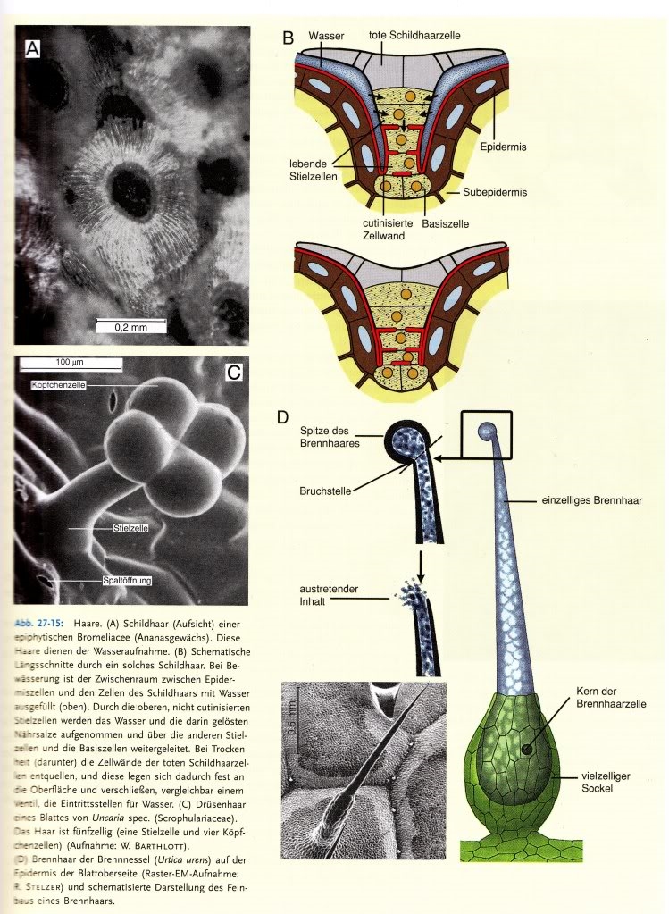 Aber gut, hier eine Abbildung eines Schildhaares der Ananasgewächse, die aber einen einreihigen mehrzelligen Stiel besitzen: