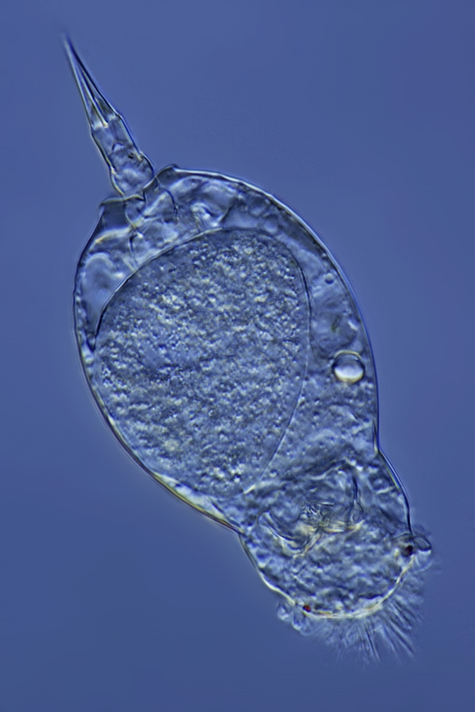 es handelt sich wahrscheinlich um das Mützenrädertier, Lepadella sp.