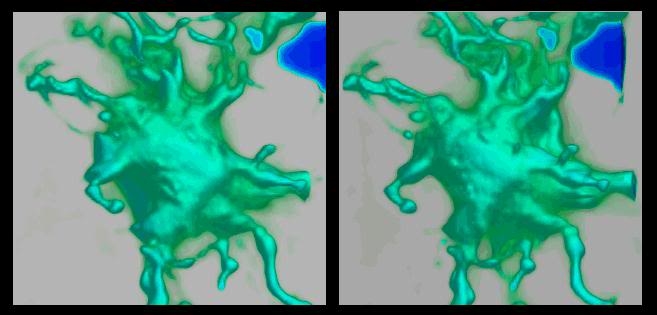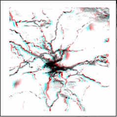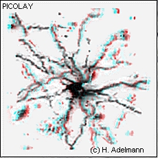 Die Ergebnisse des Renderings sind allerdings oft arg verfremdend. Ich habe mal aus Ihrem Bild 19 die 'Thumbnails' kopiert und für eine Hologramm-Darstellung mit PICOLAY verwendet (am besten zu betrachten durch eine Rot-Cyan-Brille). Irgendwie sieht das mehr nach Gliazelle aus (und ähnelt Ihren Originalen) - oder nicht?