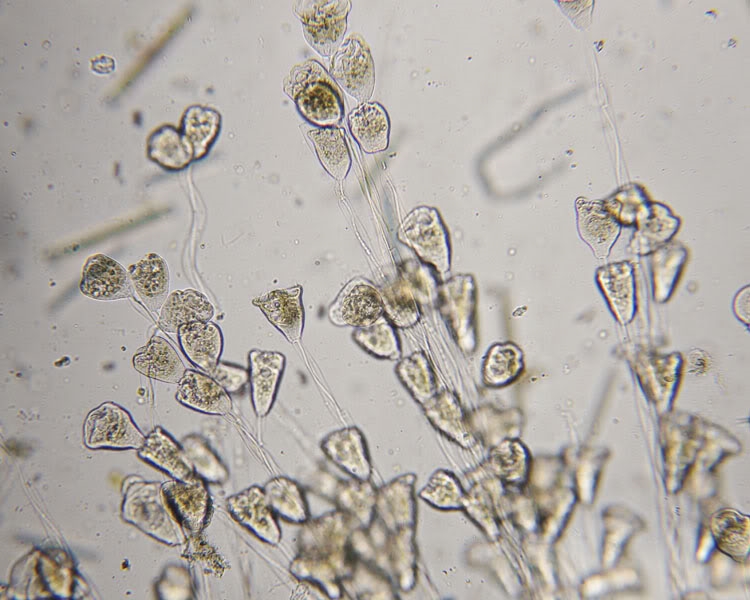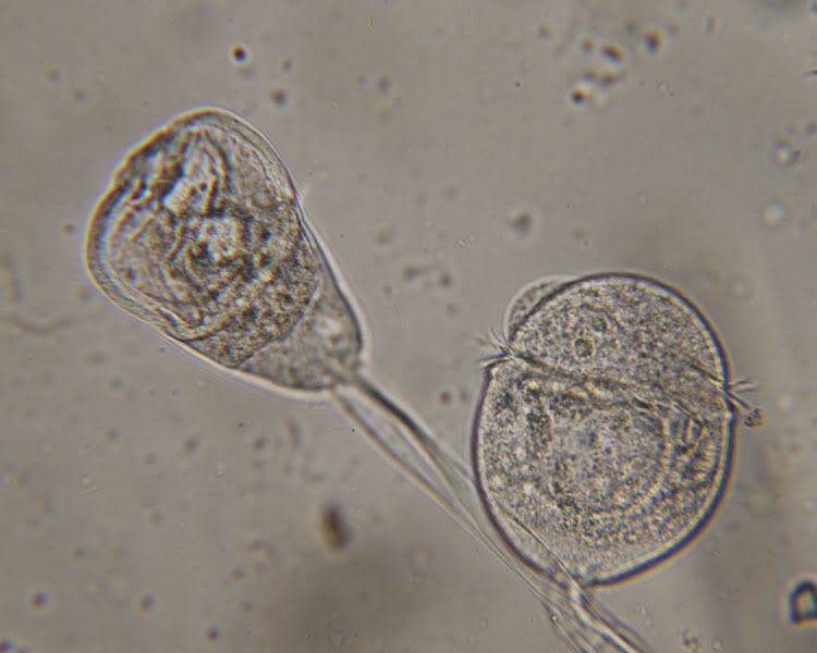 Hallo, es scheint aber gabelige Stielen zu haben, und lebt nicht vereinzelt. Nach meinem Buch soll das Carchesium bedeuten?