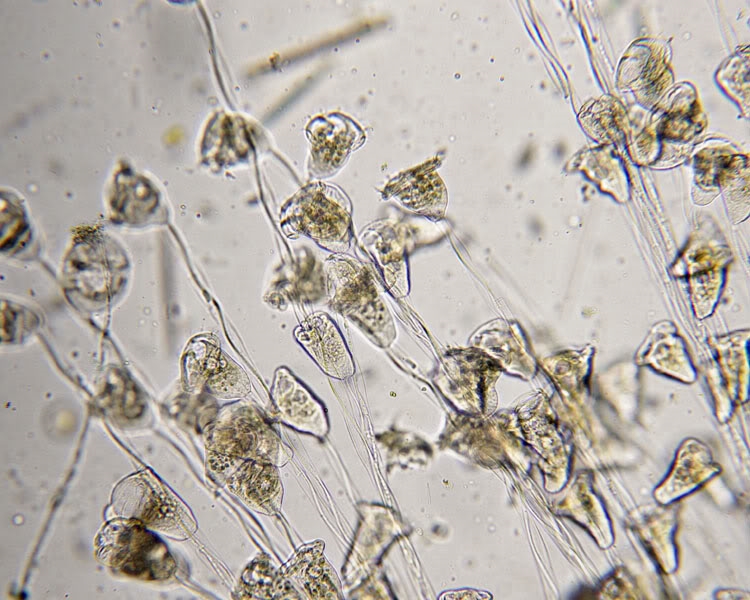 Ich habe nachgesucht, und weiss jetzt, dass es kein Vorticella ist. Also lieber Carchesium polypinum.