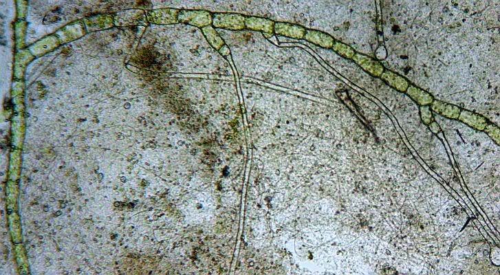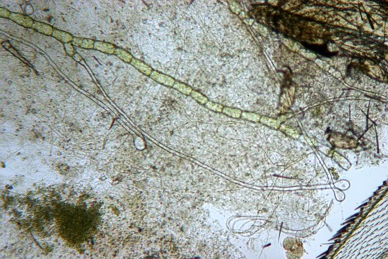 Weiß jemand von euch, ob das ein Stück der Kanne oder aber eine selbständige Alge oder Moosprotonema ist? Wenn Alge, was sind das dann für komische runde Strukturen am Ende?