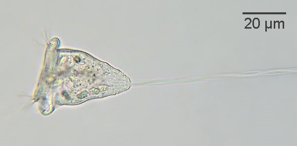 dieses Glockentier finde ich in meinen Proben aus dem Pillersee-Ried immer wieder. Auffällig ist ein extrem langer Stiel. Das Tier kontrahiert spiralig im unteren Viertel des Stiels. Was kann das sein?