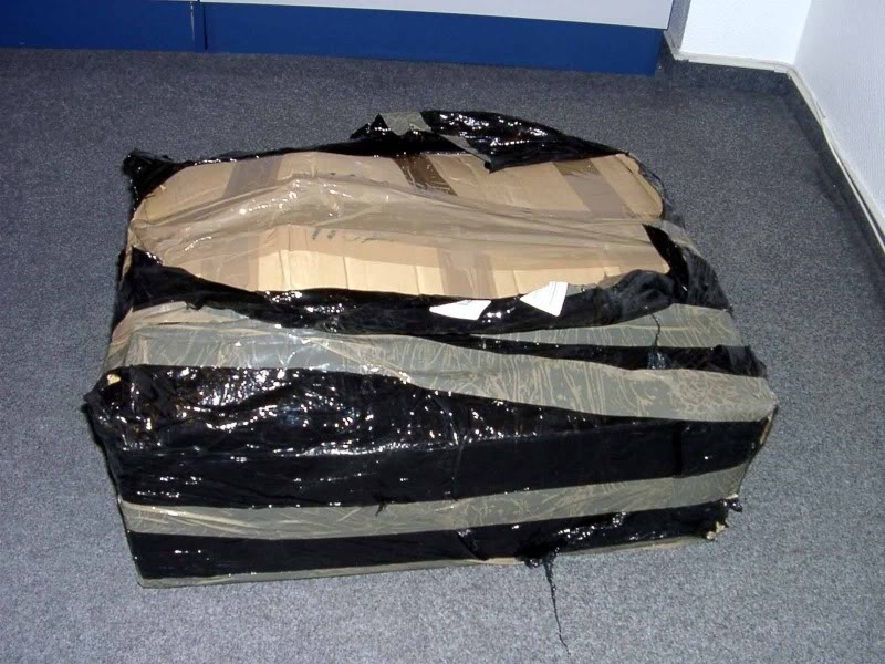Erst im Nachhinein fiel mir die gar nicht so geringe Ähnlichkeit des Paketes mit einem Sarg auf......irgendwie treffend!