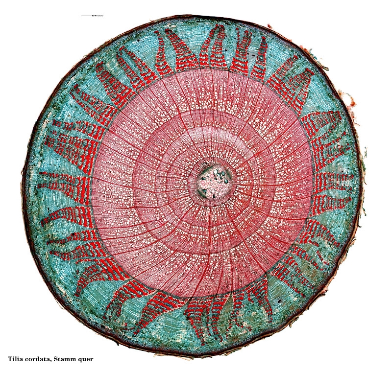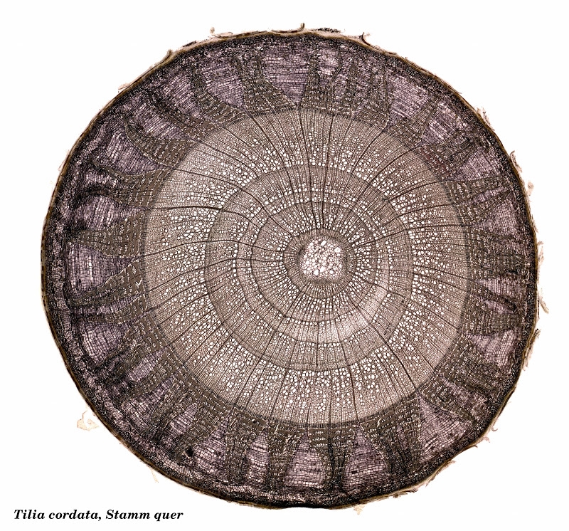Botanik: Winterlinde (Tilia cordata), Stamm quer *