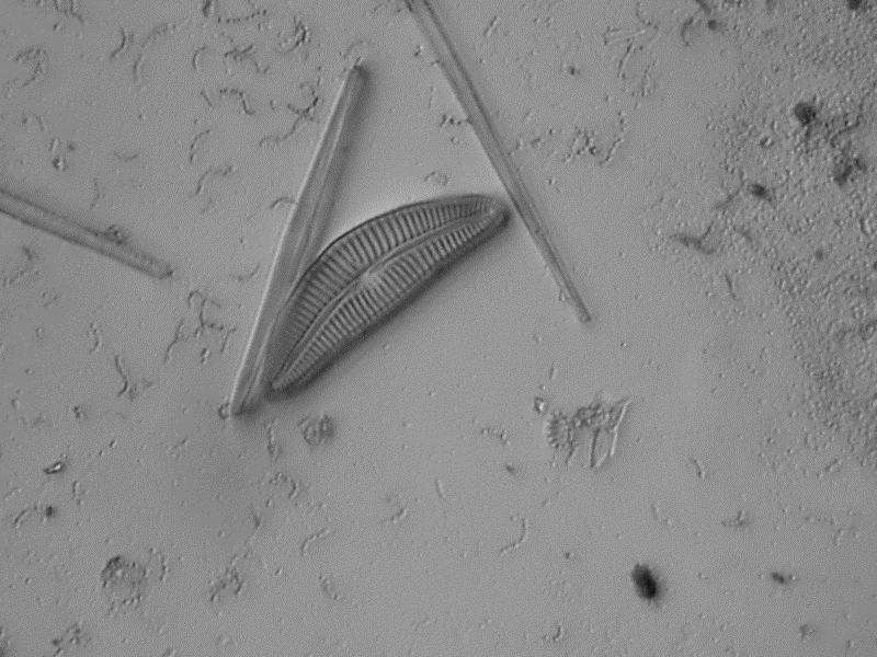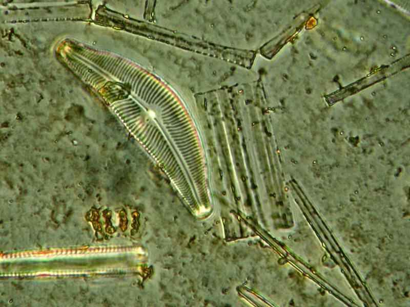 Glühpräparate von Kieselalgen sind geeignet für Hobbymikroskopiker die den Aufwand der professionellen Aufarbeitung von Kieselalgen mit konzentrierter schwefelsäure scheuen. Die Ergebnisse sind für eine Bestimmung bis zur Art durchaus geeignet. Wirklich schöne Präparate, von denen man auch schöne Fotos machen kann, gelingen aber durch das Glühen nur selten. Hier 2 Beispielbilder von Glühpräparaten, die während der Veranstaltung angefertigt wurden: