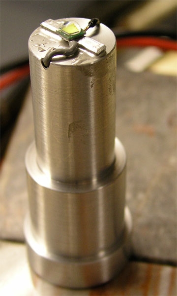 Ein kleines zylindrisches Drehteil (viel einfacher als das bei der 15 W NV Version) genügt als Kühlkörper.