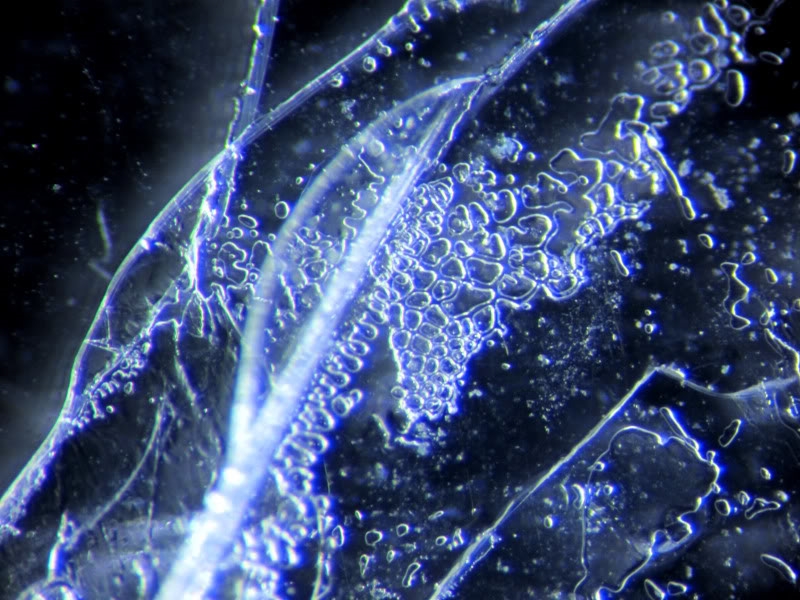 ich meinte diese Verbundglasscheiben mit Folie dazwischen, die sind natürlich auch verklebt. Wenn so eine Scheibe z.B. durch einen setlichen Stoß beschädigt wird, kommt es zu ähnlichen Strukturen, wenn die Gläser gerissen sind, Luft eindringt und sich die Folie ablöst.
