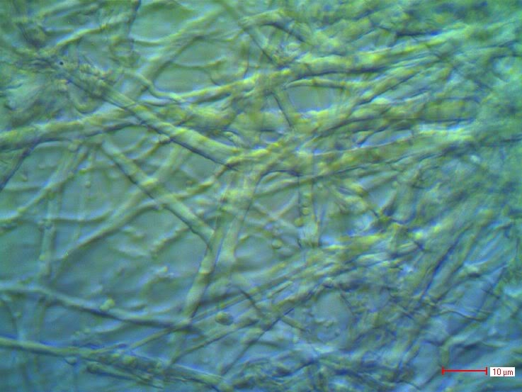 Pilzmycel ? - sollte ja eigentlich nicht im Kühlschrank sein - zumindestens nicht in der dichten Form.