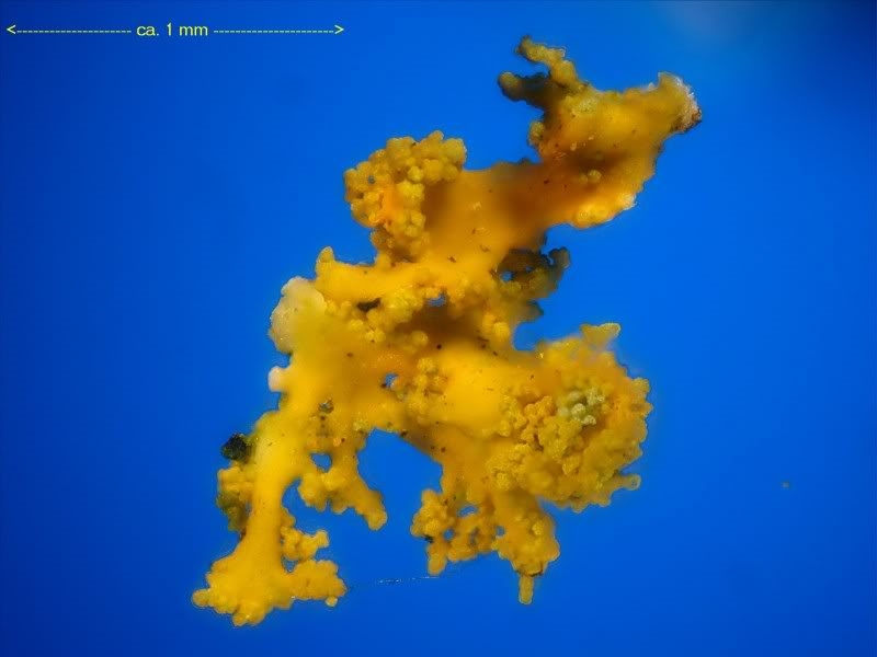 Diese Flechte passt in ein Quadrat von 1,5 x 1,5 mm. Sie wächst am Ahorn vor der Haustür, also nichts Besonderes - nur mal zum Anschauen.