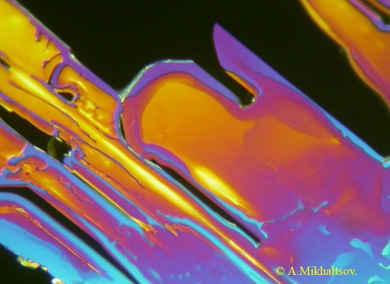 Hier sind einige meiner Fotos der Mikrokristalle. Mikroskope Lomo Mikmed-1 var.2, die Polarisation, die Kamera Nikon Coolpix 4500