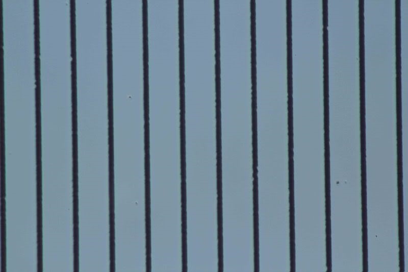 2) Wenn ich die Beleuchtung so einstelle, dass ich auf Belichtungszeiten unter 1/500 s komme, ist alle gut. Erhöhe ich die Beleuchtung so, dass ich Belichtungszeiten darüber bekomme, entstehen im Monitorbild die berühmten durchlaufenden Streifen und ich erhalte Bilder mit ungleichmäßiger Ausleuchtung. Hier ebenfalls zwei Beispiele: