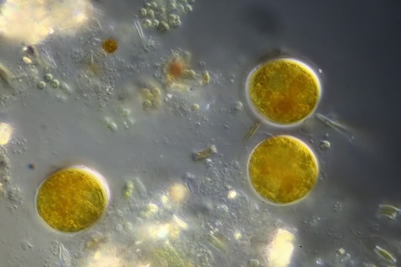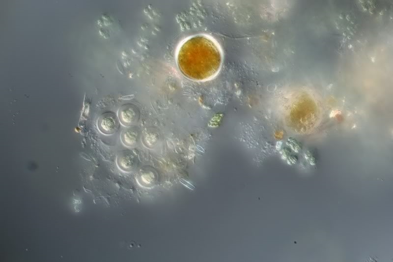 bei den orangefarbenen Pfannkuchen könnte es sich um Dauestadien von Dinoflagellaten handeln (?)