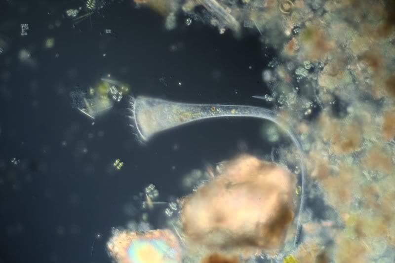 Ein schönes Trompetentierchen. Trotz schwacher Vergrößerung reicht die Tiefenschärfe nicht.