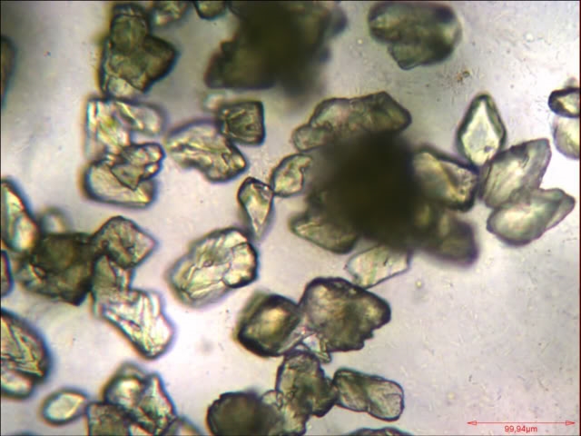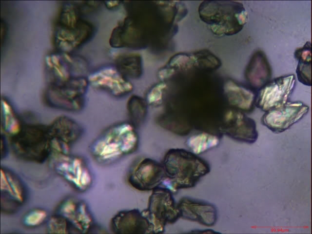 wenn die doppelbrechenden Körner ca 10 µm dick sind und Interferenzfarben höherer Ordnung zeigen ist Calcit nach meiner unmaßgeblichen Meinug schon wahrscheinlich - ist Dir nicht irgendwie aus dem Ohr gerieselt? ;D