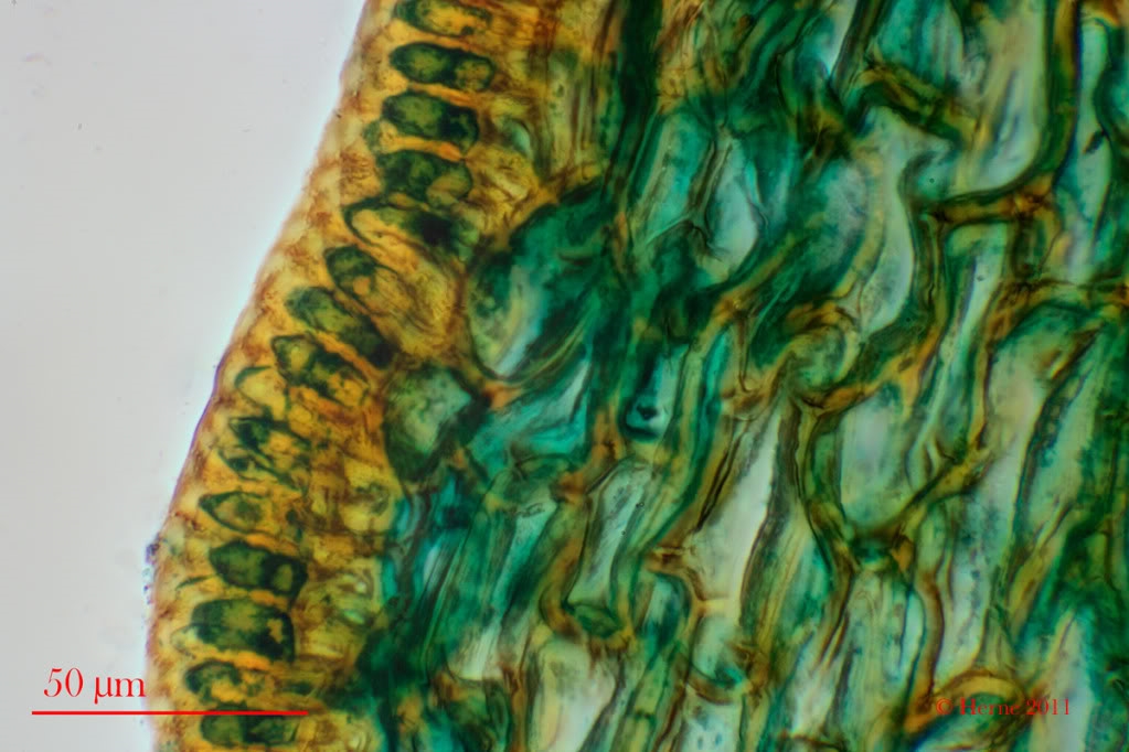 Da ich vom Aufbau der Pflanzen noch weniger weiß, als von meinen sonstigen Objekten, bitte ich um Hilfe bei der Zuordnung der einzelnen Bereiche. Es handelt sich um Schnitte durch den Kern einer Litschi-Frucht, die mit 15 bzw 30 µm Dicke angefertigt wurden und den Bereich vom eigentlichen Kern zur Außenhaut (1 + 2) sowie einen Ausschnitt aus dieser Hülle zeigen.. Die beiden 15µm-Scheibchen wurden in Etzold grün gefärbt, der 30µm-Schnitt in einer Färbung, an der ich noch am laborieren bin. Wenn´s gelingt, werde ich die Daten dazu hier angeben.