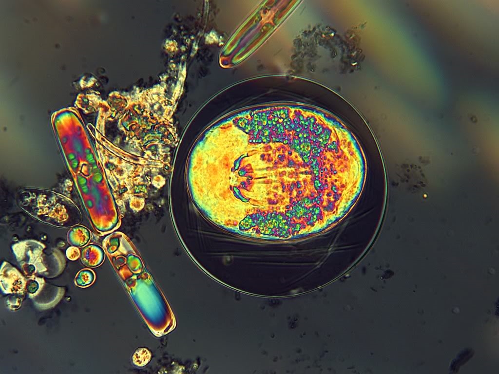 Das hier ist offenbar ein Ei/Embryo eines Rädertieres oder Bärtierchens (?), man kann den Kauer schön erkennen