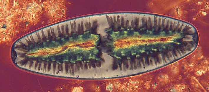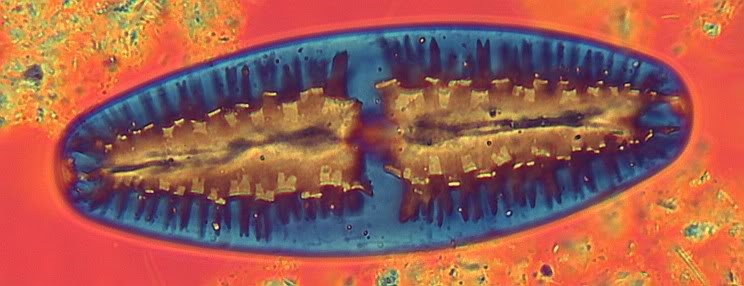 aus der Reihe der Wahner Heide Aufnahmen mit dem Interferenzkontrast nach Jamin-Lebedeff ergänze ich heute noch ein ästhetisches Kieselalgenband.