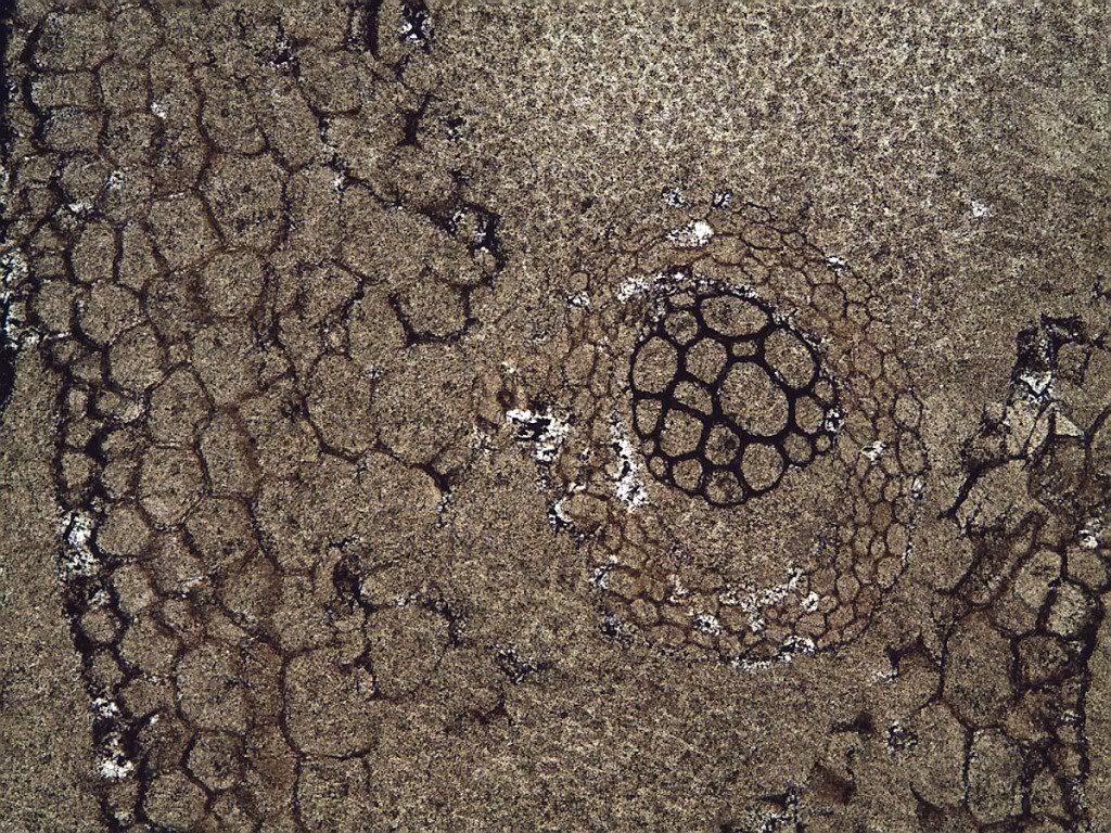 Das schöne Ästchen (Wurzel?) mit den Verzweigungen im ersten Bild ist ca 4,5 mm im Durchmesser, die anderen Pflanzenzellen und Leitbündel sind in der von rezenten Pflanzen bekannten Grösse.