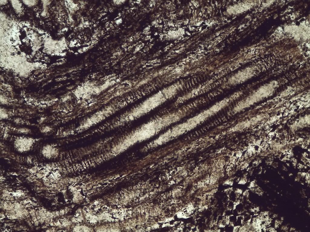 heute ergänze ich diesen Post mit einem Dünnschliff durch eine Knochenplatte eines Panzerfisches.