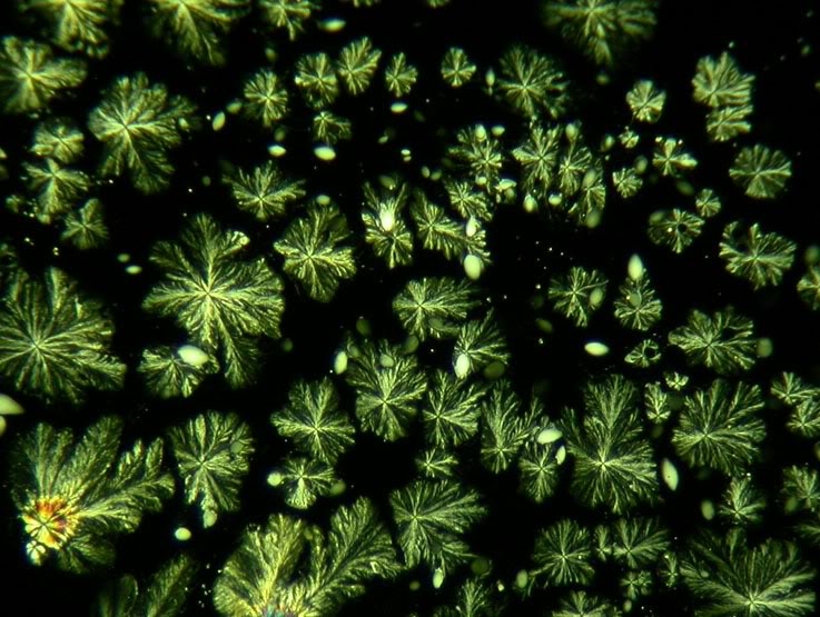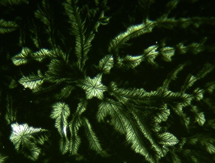 Wie diese Kristalle aussehen, dürfte wohl sehr stark von den Bedingungen abhängen, unter denen sie gewachsen sind. Als da wären: Temperatur, Verdampfungsrate des Wassers, und, bei diesen Dendriten, Beschaffenheit des Substrates: nicht alle Objektträger sind wohl immer gleich gut geputzt.