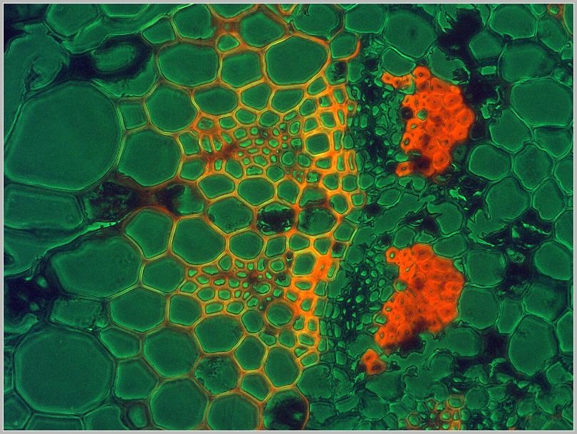 Mich z.B. würde besonders interessieren, woher die rote Fluoreszenz der Cuticula in der ungefärbten Kontrolle kommt. Bei meinen bisherigen oberflächlichen Fluoreszenz-Blicken auf verschiedene Schnitte von anderem Frischmaterial ist mir das nämlich noch nirgends aufgefallen.