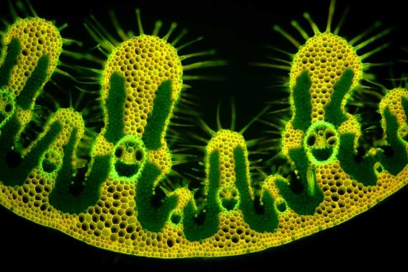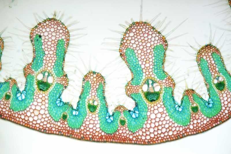 ockerfarbigem Phloem und einem differenziert erscheinenden Assimilationsparenchym ein paar interessante Akzente.