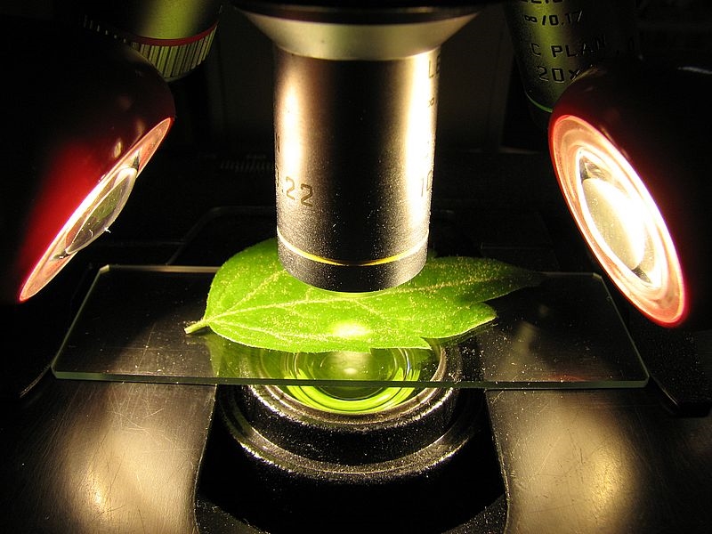 Bei den Aufnahmen der Blätter sind mir die vielen weißlichen Punkte auf der Blattoberfläche aufgefallen. Ein Grund, sich die Blattoberfläche im improvisierten Auflicht genauer anzusehen.