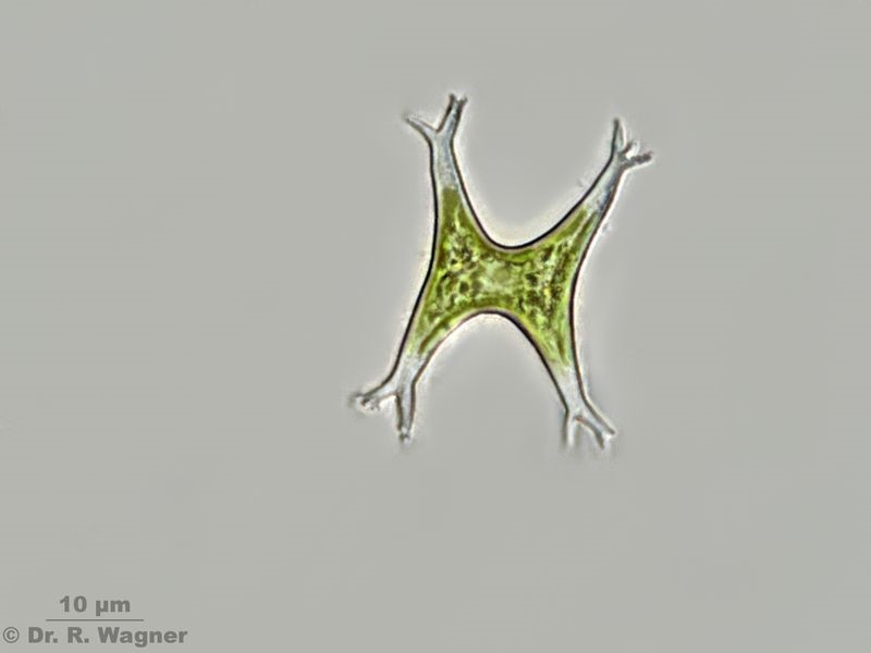 mit dieser Alge komme ich einfach nicht weiter. Fundort war die Uferzone eines kleinen Baggersees bei Düsseldorf. Staurastrum vielleicht, aber ohne Isthmus? Eventuell eine Xanthophycee? Zum Beispiel Isthmochloron lobulatum (Im Wassertropfen, 10. Auflage, unter "neu aufgenommene Arten", S. 346) beschrieben. Dort sind die Enden aber nicht so stark verzweigt dargestellt. Wer weiß hier weiter?