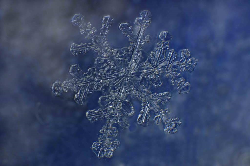 Deswegen hab ich mich natürlich mich gleich hingesetzt und die Schneeflocken "live" mikroskopiert- kein Abdruckpräparat, alles echt!