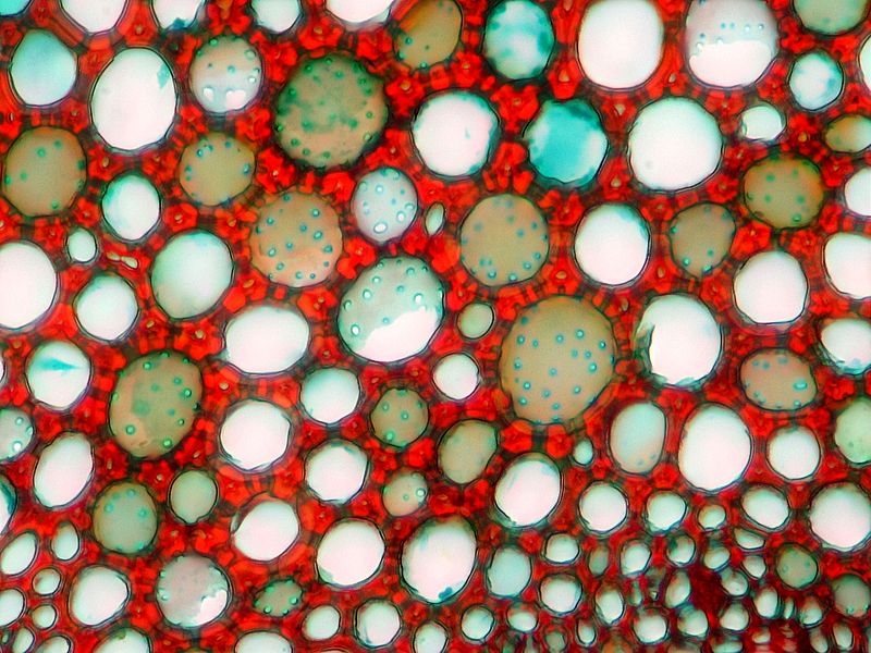 Interessant finde ich die Struktur in den großen ovalen Zellen des Rindenparenchyms.