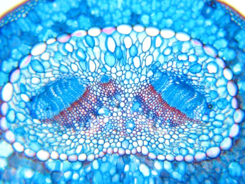Und dann nochmal das Leitbündel von ganz nahem bei 400facher Vergrößerung auch in schiefer Beleuchtung: