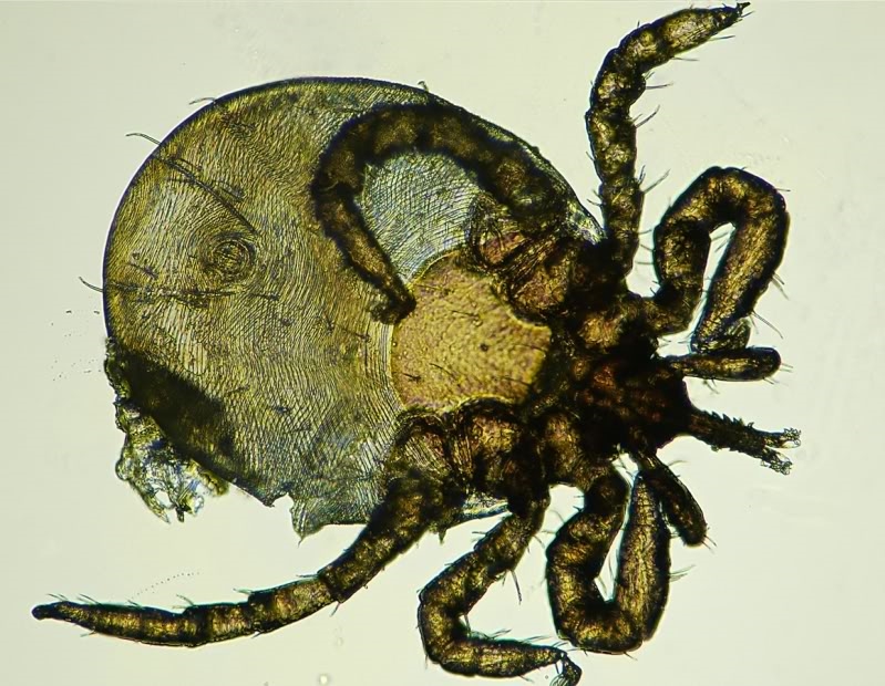 diese Babyzecke (sie mißt nur 795 µm!) hat mich leider erwischt. Die Quaddel ist 1 cm groß und jetzt meine Frage dazu: woher hat die Zecke die Borrelienerreger? Bekommt sie die von der Mutter oder über eine erste Blutmahlzeit?