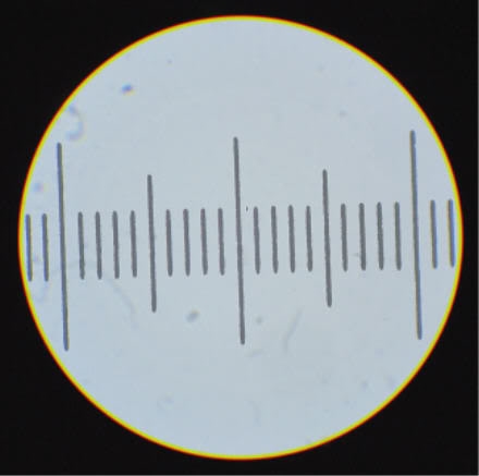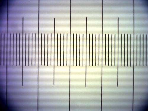 Die Mikrometerskala ist recht gut abgebildet, keine extreme Bildfeldwölbung, keine CVD zu erkennen. POSITIV !