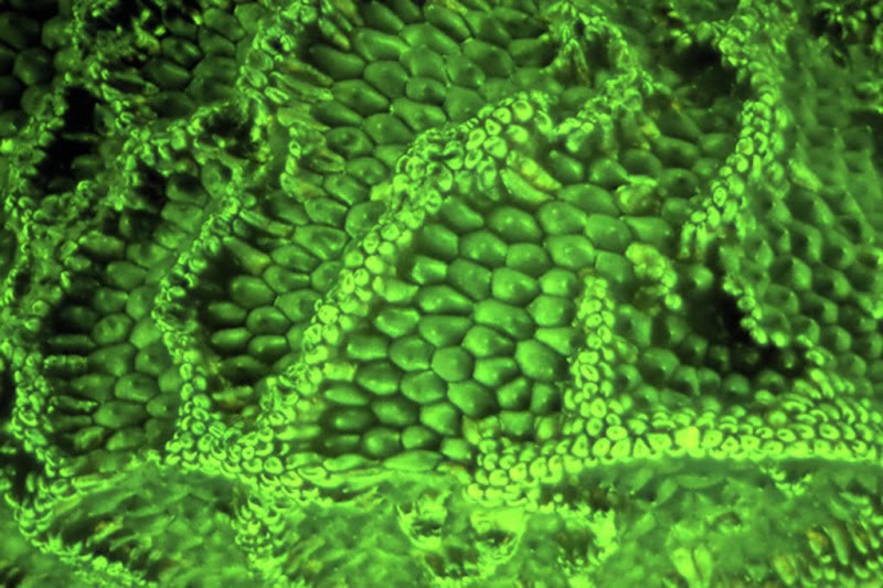 Dann tasten wir uns mal ran: pflanzliche Epidermis? Ich dachte ja an Blatt, aber die Farbe deutet dann doch eher auf eine Frucht hin?