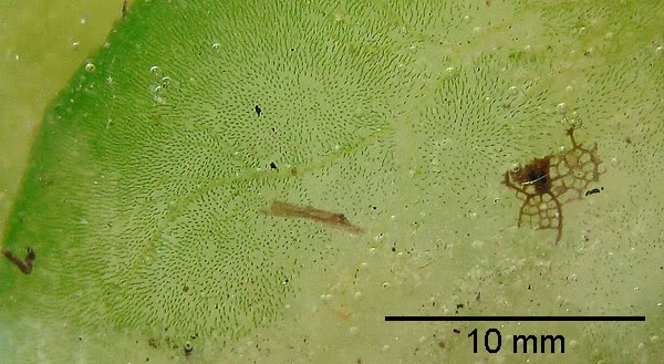 Zunächst vermutete ich eine Alge, doch bei der Detailaufnahme bot sich dieses Bild: