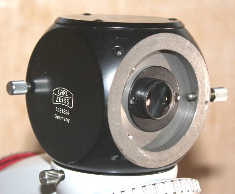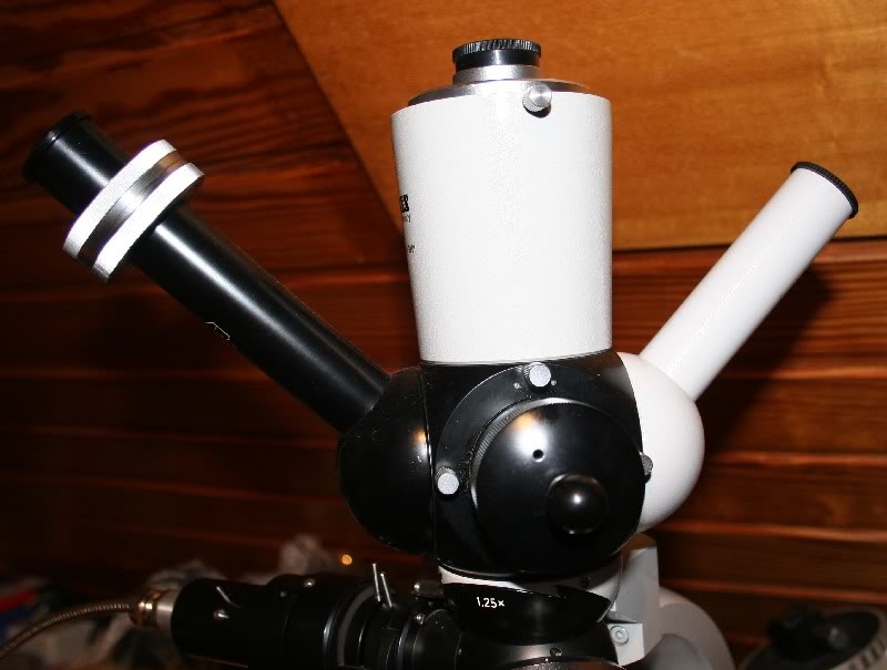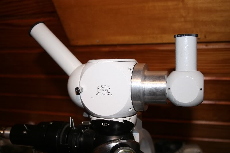 Einen Winkelspiegel hatte ich auch überlegt, aber die sehr kleine Kamera ohne jede Verschlußwackelei macht absolut keine Probleme. Eine DSLR würde ich so nicht anbauen. Einziger Nachteil : das Optovar kann ich zusammen nicht anbauen, es sei denn ich entferne das Telansystem im Optovar und Teilerwürfel.  :(