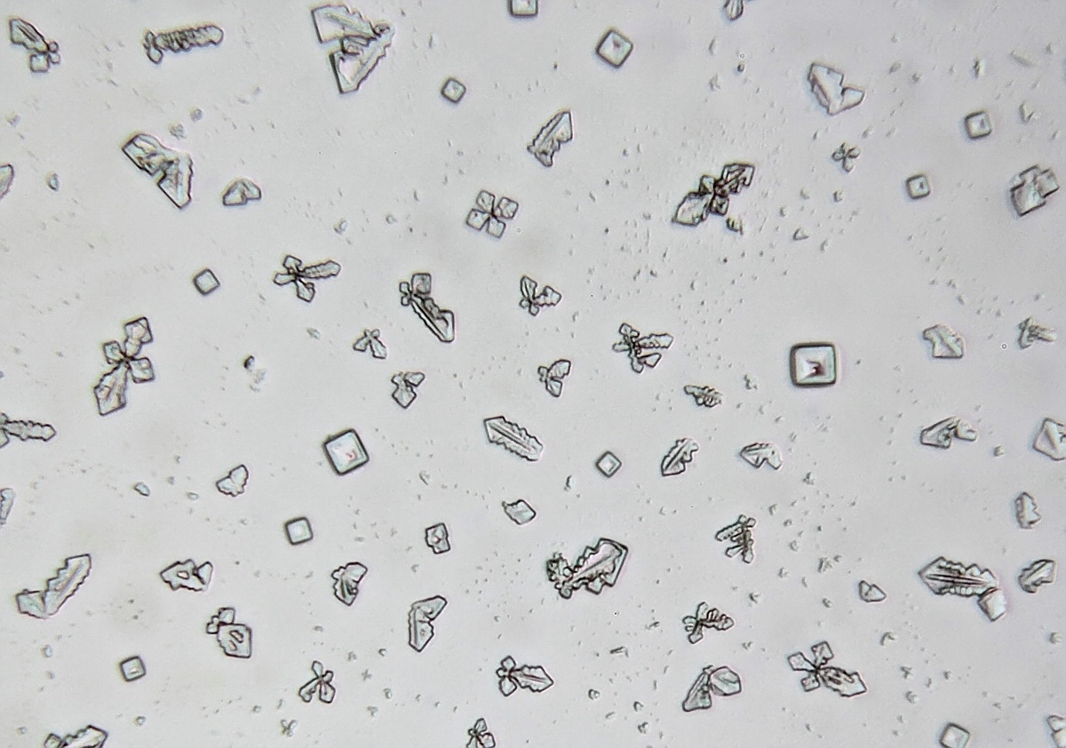 als das Rätsel macht mich ja ganz kirre: Ich meine, ich hätte diese Kristalle schon einmal gesehen, aber die Abbildungen in meinen Büchern zur Analytischen Chemie stimmen nicht überein :(