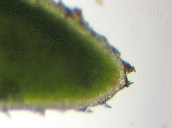 Blattspitze (sorry, mieses Foto, die Blätter sind recht dick)