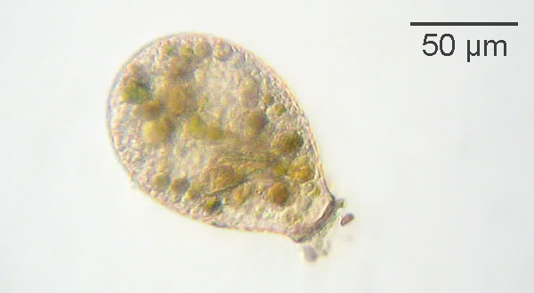 Diese Amöbe lebte. Ähnlich wie Hyalosphenia papilio, doch ohne Zoochlorellen. Kann es H. cuneata sein?