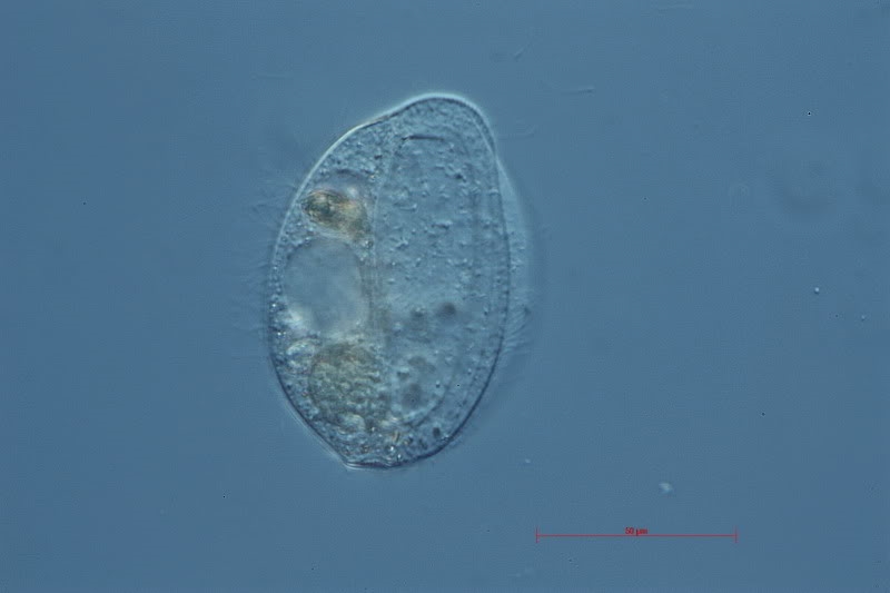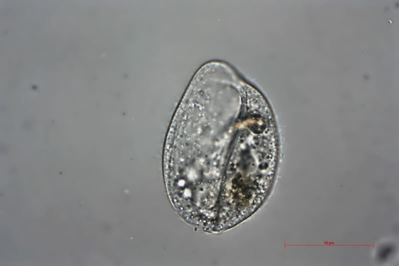 im kleinen Teich fand ich gestern einige dieser mir unbekannten Organismen. Die Oberfläche weist Wimpern aut. Die Tiere sind dreidimensional interessant: Sie erinnern an "Schutzhelme" und drehen sich schnell um die eigene Achse, als wenn sie mit der offenen Seite kleinere Organismen einfangen wollten. Beide Fotos von "unten" ins Innere gezielt. Die Cuticula weist feine Streifen aus. Größe ca. 90X60 Mikrometer. Kennt jemand diese Organismen?